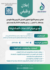 تعلن جمعية أفق لتطوير العمل الخيري والتطوعي بمنطقة عسير عن وظيفة شاغرة بمسمى